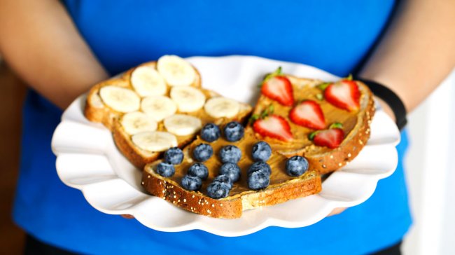 Tip: Je verwacht het misschien niet, maar ook zomerfruit als blauwe bessen, frambozen of aardbeien smaken heerlijk op een boterham met pindakaas. Komkommer trouwens ook.