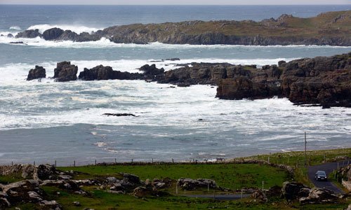 Vlak voor het hoog op de klippen gelegen Malin Head, het noordelijkste punt van Ierland, beuken hoge golven op de dreigende rotszuilen in de zee. Paarden grazen er vredig in de wei, zich ogenschijnlijk niets aantrekkend van het watergeweld. Maar de wind blaast op deze onstuimige plek op het schiereiland Inishowen zo hard dat je je amper staande kunt houden.