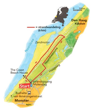 Route: naar de Zandmotor, een kunstmatig aangelegd schiereiland als kustbescherming en -onderhoud tussen Terheijde en Kijkduin (www.dezandmotor.nl), terug over de dijk naar Monster.