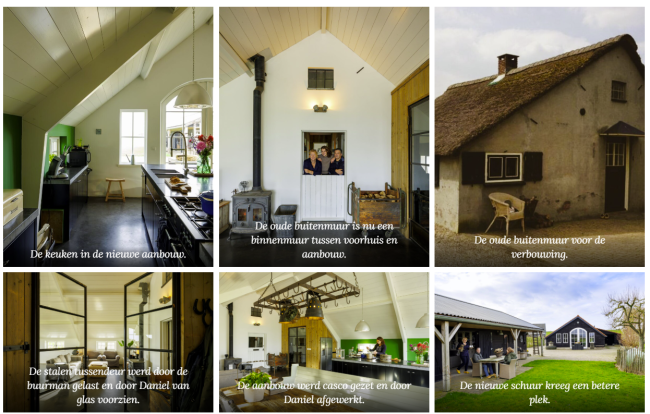 voorhuis aan te pakken, slaapt het stel tijdelijk in de nieuwe woonkamer; hun dochter krijgt een plekje in een caravan op het erf. Daniel: “Het was niks. Er zat allemaal oud hout in, het was in elkaar geknutselde ellende. Ik heb alles eruit gesloopt, tot alleen de muren en het dak nog stonden. Vervolgens hebben we de ruimte opnieuw ingedeeld en alles helemaal opnieuw opgebouwd en geïsoleerd.”