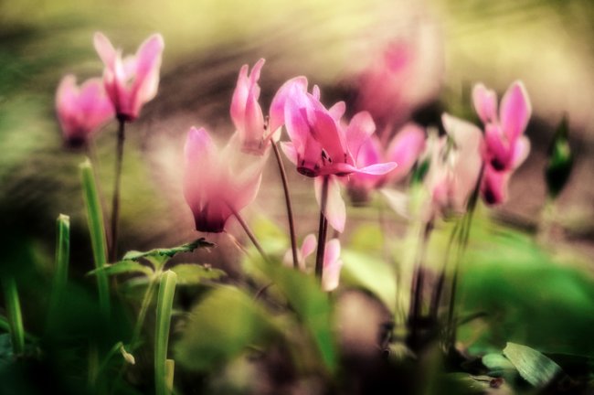 In oktober bloeien de tuincyclamen, Cyclamen hederifolium. Daarna volgen de wat kleinere Cyclamen coum. Je kunt deze cyclamen jarenlang in een grote bollenschaal in leven houden. ’s winters kunnen ze buiten blijven, maar haal ze bij meer dan vijf graden vorst voor de zekerheid even naar binnen. In de volle grond is er geen probleem, maar in een schaal kunnen de knollen bevriezen.