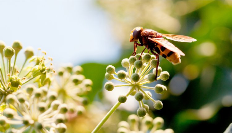 3. Bloeiende klimop is een ware insectenmagneet. Klimop bloeit laat in het jaar, als bijna alle planten zijn uitgebloeid, en biedt insecten de gelegenheid om voor de winter nog eens bij te tanken. Kevers, wespen, vliegen, vlinders en bijen zorgen voor een gezoem van jewelste.