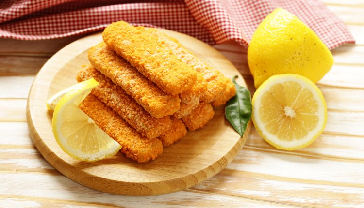 - Verwarm de margarine en bak hierin de visreepjes in 5 minuten gaar en bruin.